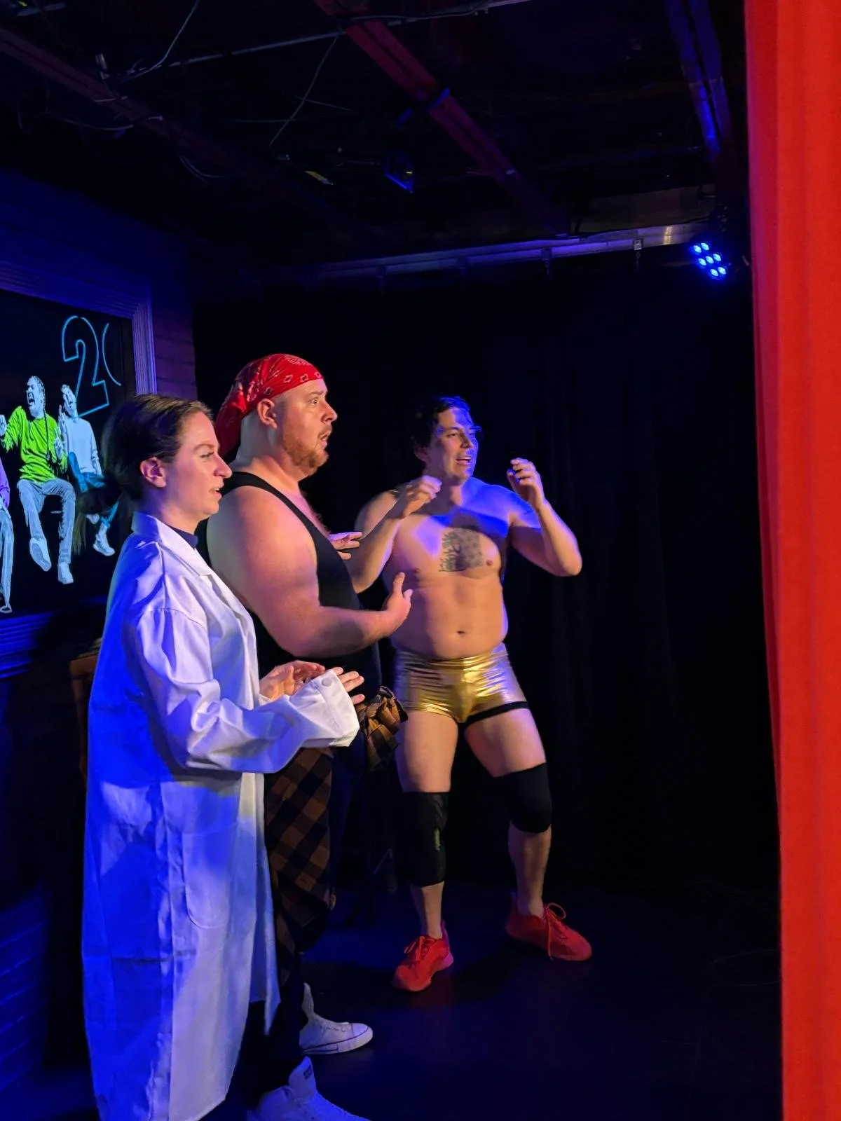 I performed a few sketches alongside this hilarious group of comedians! Photo of Bri, Stuart Simpson and Luis Escobar by Alice Jordan, from the sketch “Monday Nite Thaw”.